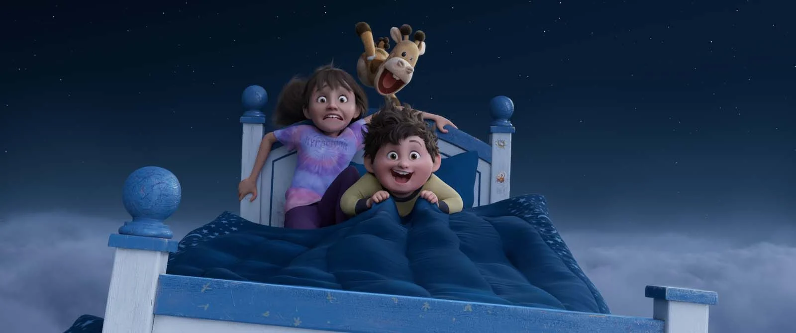 Animé par Kuku Studios, nouveau-né de la scène de l’animation américaine fondée par trois anciens de chez Pixar dont le réalisateur Alex Woo, le film produit par et pour Netflix surprend. On s’attendait à un rip off de Vice Versa (qui reprend le sujet des rêves via une série dérivée sur Disney+) mais c’est du coté des productions Amblin que les scénaristes vont chercher leur inspiration quand ce n’est pas encore plus loin avec l’évident Little Nemo de Winsor McCay. Et ça fonctionne ! Les personnages sont tous très attachants et leurs premières virées dans le monde des rêves est vraiment chouette. On apprécie les personnages secondaires (cette peluche qui pète des arcs en ciel est parfaite) ainsi que les évidences musicales comme Sweet Dreams de Eurythmics ou Mr Sandman.