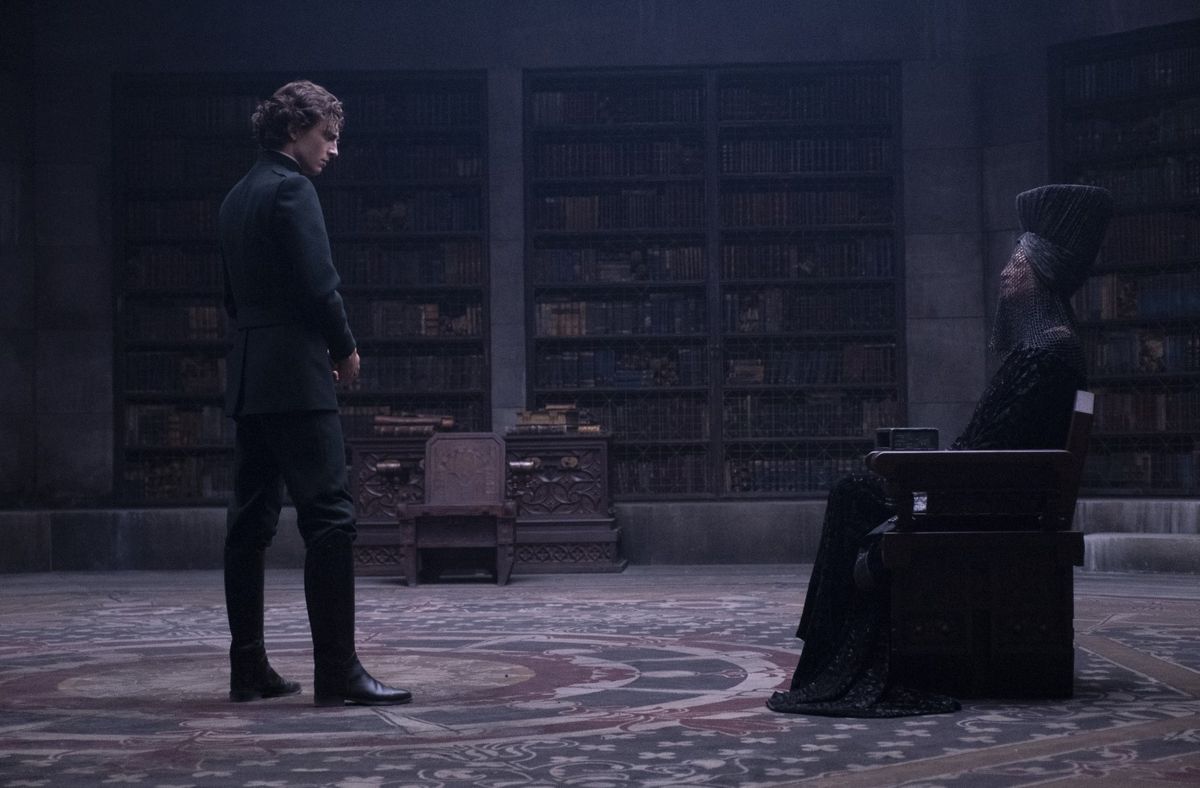 On n’en dira pas d’avantage pour ne pas spoiler. Le pitch, résumé comme tel, parait simple. C’est manifestement la volonté de Denis Villeneuve qui a simplifié différents éléments du roman. On suit donc le héros dans une intrigue à la fois linéaire et complexe. Complexe car le réalisateur injecte abruptement différents concepts chers à Frank Herbert comme l’Ordre du Bene Gesserit (un groupe de prêtresses manipulatrices et possédant différents pouvoirs) et parce qu’il a beaucoup travaillé l’écriture et les visions de son personnage principal, Paul. A l’inverse, il a beaucoup simplifié les autres personnages et omis des éléments de l’intrigue (comme le voyage spatial réalisé grâce à l’épice) pour une histoire qui pourrait se résumer à une fuite dans le désert une fois les éléments de base posés. C’est à la fois une qualité pour les néophytes et un défaut pour les spécialistes de Frank Herbert qui vont grincer des dents.